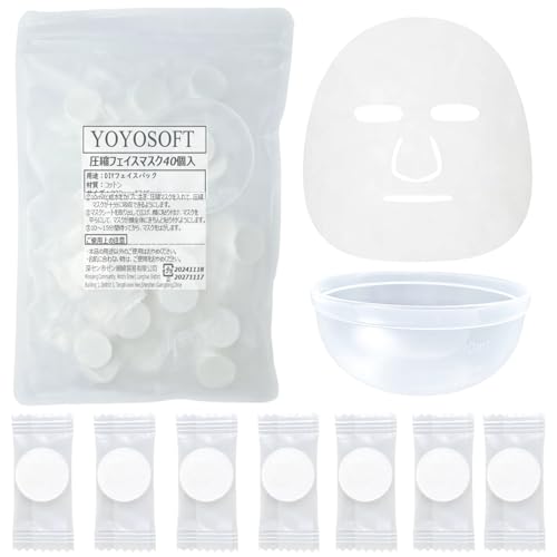 YOYOSOFT 圧縮フェイスマスク コットン 個包装 パック 顔 フェイスパック シートだけ DIY化粧水パック ローションシート 使い捨て カップ入り (22×23cm(40個))