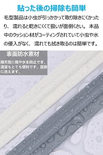 貼った後の掃除も簡単:毛型製品は小虫が引っかかって取り除きにくかったり、濡れると乾きにくくて扱いが面倒くさい。本品中のクッション材がコーティングされていて小虫や水の侵入がなく、濡れても拭き取るのは簡単です。
