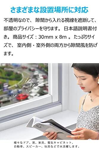 目隠し:不透明なので、隙間から入れる視線を遮断して、部屋のプライバシーを守ります。 日本語説明書付き。商品サイズ:30mm x 8m 。たっぷりサイズで、室内側・室外側の両方から隙間風を防げます。
