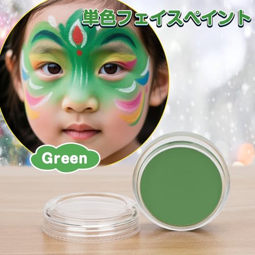【フェイスペイント単色】フェイスペイントは単色の緑色で、緑塗りのほか、ボディにバラエティのペイントを行うことができます