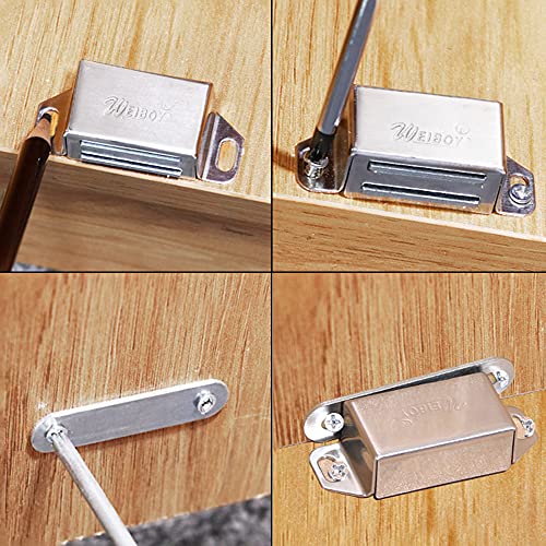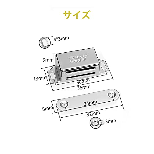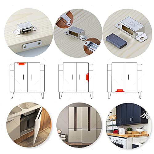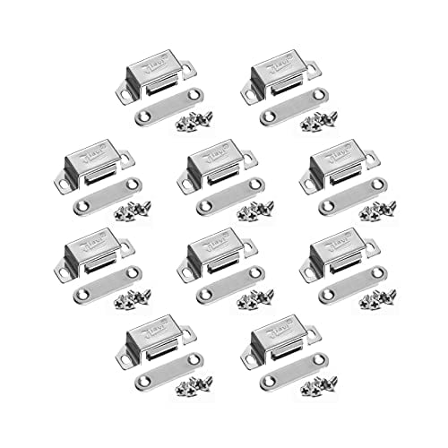 YFFSFDC マグネットキャッチ 強力 小型 磁気キャッチラッチ ネジ付き ステンレス鋼製 磁石 ドア止め金具 引き戸/家具扉/戸棚/食器棚用 磁気ドアキャッチ (シルバー10セット)