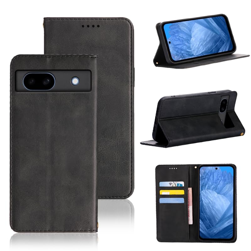 適用 Google Pixel 8a ケース 手帳型 グーグルピクセル8a 用 手帳型ケース Pixel8a 用 スマホケース カバー 手帳型 PUレザー カード収納 財布型 耐衝撃 ケース マグネット スタンド機能付き 5色(Google Pixel8a 用 ケース 手帳型) (ブラック)