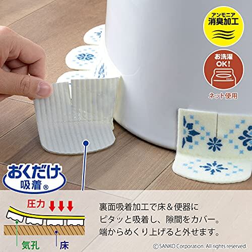 壁面の隅やお手持ちのトイレマットの下にも使用できます。1枚使用で便器前面、2枚使用で、便器の奥までカバーします。
