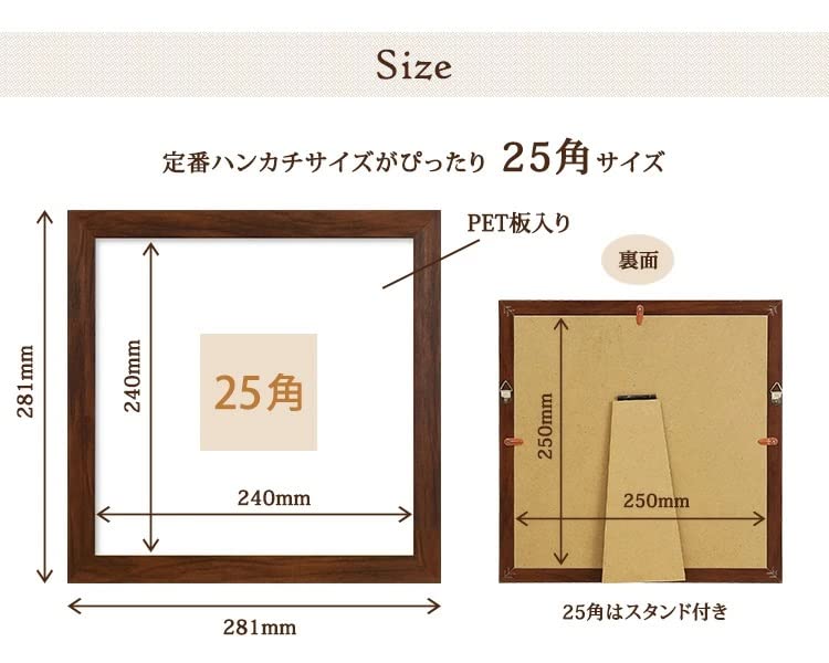 万丈 VANJOH ハンカチ額 25角 ブラウン 106043 HAN25-BR