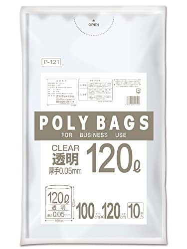 オルディ ごみ袋 120L 厚手 透明 10枚入 縦120cm×横100cm 厚さ0.05mm 業務用 カットしてレジ前ガード・ポンチョ・防護服に ポリバッグビジネス P-121