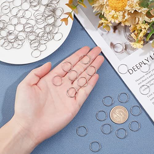 UNICRAFTALE 100個 15x1.8mm 304ステンレス製スプリットリング 丸カン 丸リング 銀色 金属色 キーホルダー 二重リング 平キーリング 鍵飾り 手作り アクセサリーパーツ DIY用パーツ 副資材 ハンドメイド クラフト 手芸用品