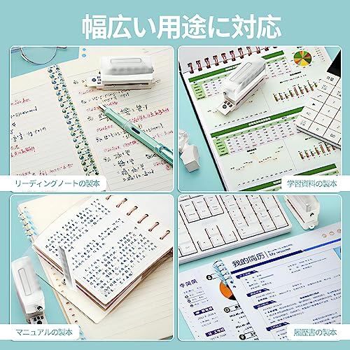 【持ち運び便利】:ルーズリーフパンチ どこにでも持ち運び、ノートブックやファイルをさまざまな状況で整理することができます。吊り下げる用の穴もあり、キーボルダーなどに掛けて収納することができ、持ち運びに便利です。コンパクトなサイズなので、デスクの上に置いても邪魔になりません。持ち運びが多い場合や使用場所を移動することが多い場合におすすめです。