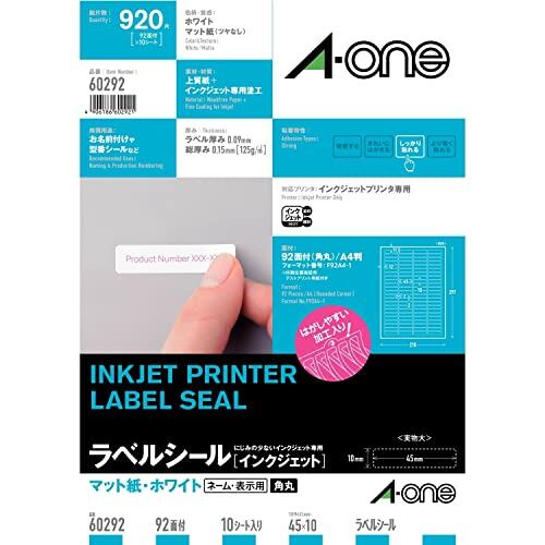 エーワン ラベルシール インクジェット 92面 10シート 60292
