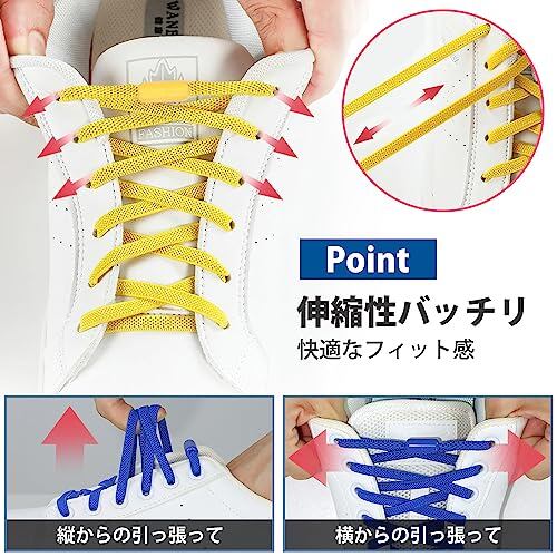 【時間短縮&便利な結ばない靴紐】 MECOLOの結ばない靴紐は、伸縮性の高い6本の太いゴムバンドで作られています。これにより、靴紐は超高伸縮性を持ち、磨耗にも耐えて断ち切れることはありません。靴に足を入れる瞬間に履き完了し、ジョギングやダンスの際にも迅速に履き替えることができます。結ばない靴紐のおかげで、一度締めたら、もう結び直す必要はありません。靴を履く際のイライラを解消し、脱ぎ履きの手間を省くことができます。運動やファッションに関心のある人には特にオススメです。
