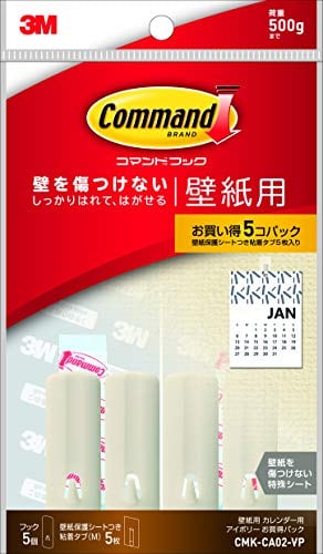 3M コマンド 壁掛け 粘着 フック 壁紙用 カレンダー用 アイボリー 5個 CMK-CA02-VP