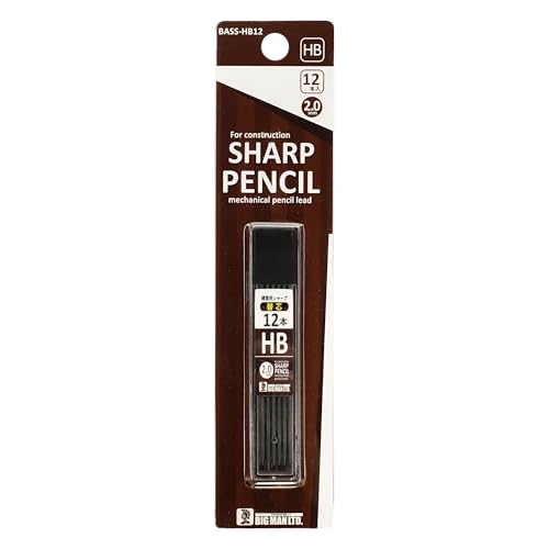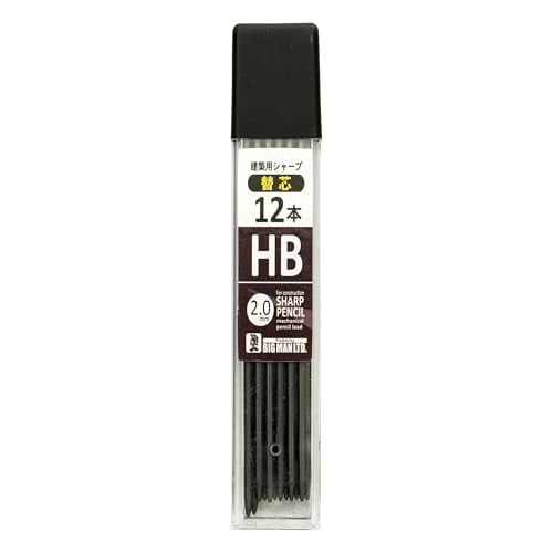 ビッグマン(Bigman) 建築用シャープペン 耐熱・硬芯 替芯 12本入 黒 HB BASS- HB12