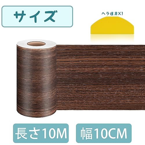 【色】:ブラウン ウォールナット 木目調 【サイズ】:長さ10M x 幅10CM( 幅には±0.5 CMの誤差がある。 ) 【素材】:安全無毒厚手PVC素材