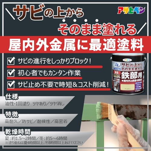 アサヒペン 塗料 ペンキ 油性高耐久鉄部用 1/12L ツヤ消しこげ茶 油性 サビの上からそのまま塗れる 艶消し 1回塗り 高密着性 耐候性 日本製