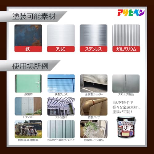 用途:(屋内外区分:屋内外用)扉、フェンス、シャッター、パイプ、機械器具、農機具などの屋内外の鉄部・鉄製品ガルバリウム鋼板のサイディング、トタンべい、アルミ建材、ステンレス製品。