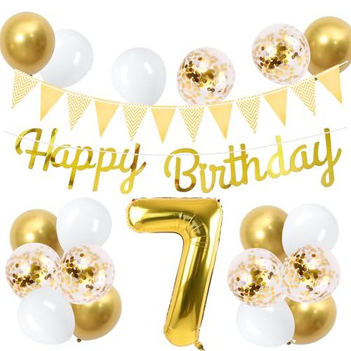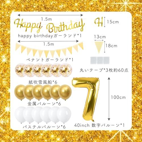 7歳 誕生日 バルーン 風船 セット 大きい 40inch ゴールド 誕生日 数字 バルーン 付け 約100cm ハッピー バースデー HAPPY BIRTHDAY ガーランド 12inch ゴールド ホワイト 風船18pcs 飾り付け セット 子供 女の子 男の子 大人 シンプル 誕生日 飾り