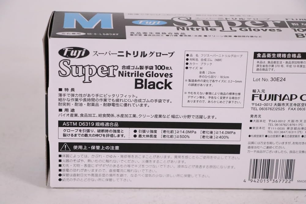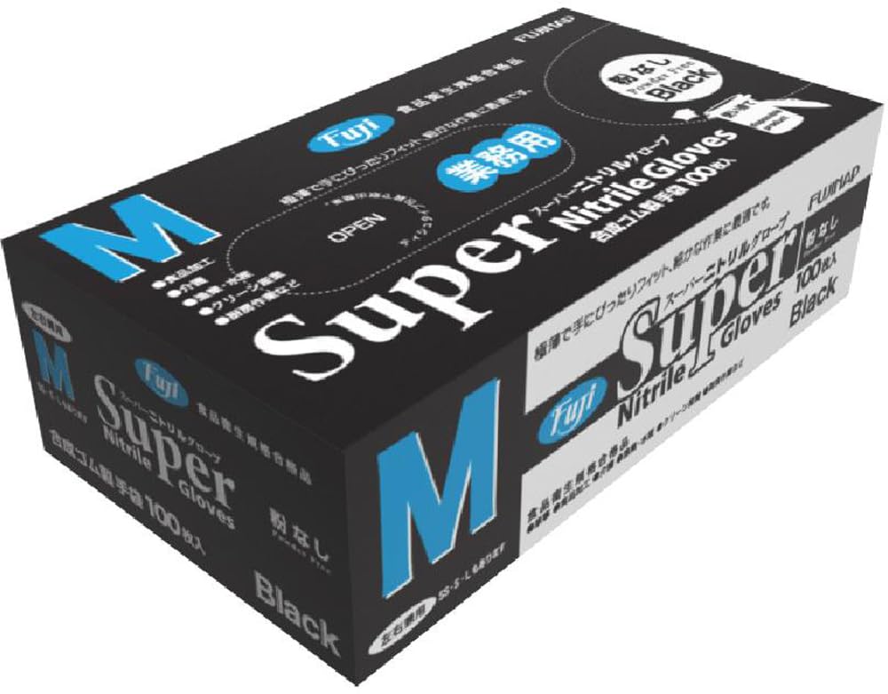 フジ スーパーニトリルグローブ 粉無し ブラック M 100枚入り
