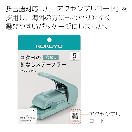 コクヨ ホチキス 穴なし 針なしステープラー ハリナックス プレス ブルーグリーン SLN-MPH105GB