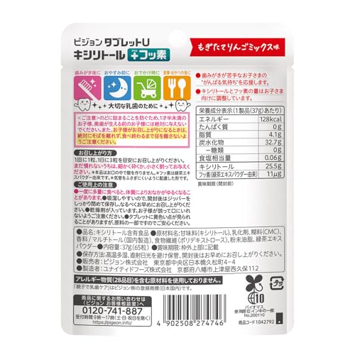 ピジョン タブレットU キシリトール+フッ素 もぎたてりんごミックス味 65粒入