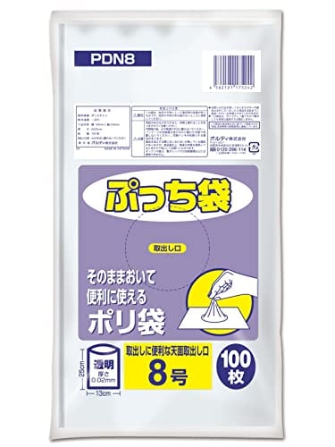 オルディ ビニール袋 キッチンポリ袋 食品保存袋 8号 透明 100枚入 横13×縦25cm 厚さ0.02mm 食品衛生法適合品 規格袋 ぷっち袋 PDN8
