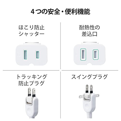 機器のコードがコンセントに届かない場合などに、電源を延長するためのコードです。極性のある2ピン式プラグ・3ピン式プラグでも使用できます。本体底面にマグネットを配し、差込口を使用していない時はスチール製の家具などに貼り付けておけます。トラッキング防止プラグやホコリ防止シャッターで使用時の事故を防ぎ心配なく使えます。 3ピン式プラグ使用時、アースは機能しません。