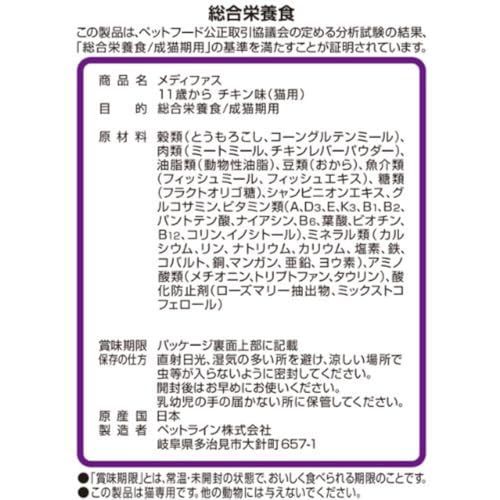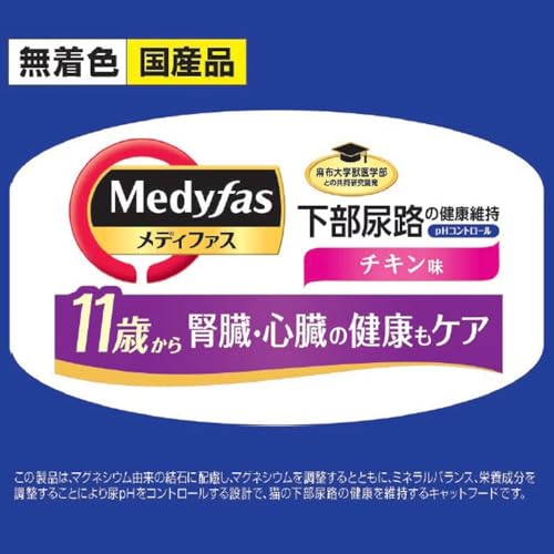 メディファス キャットフード 11歳から チキン味 【下部尿路/pHコントロール/麻布大学共同開発/国産/アルミ小分け】 1.5kg(250g×6)