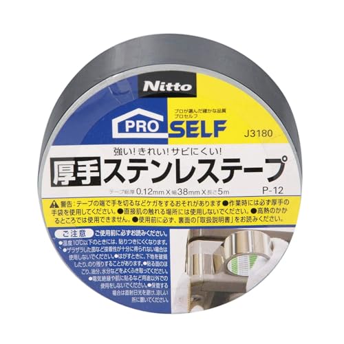 ニトムズ(Nitoms) PROSELF(プロセルフ) 厚手ステンレステープ 防水補修用 雨どい・キッチン・浴室対応 耐久性 幅38mm×長さ5m×厚さ0.12mm シルバー J3180