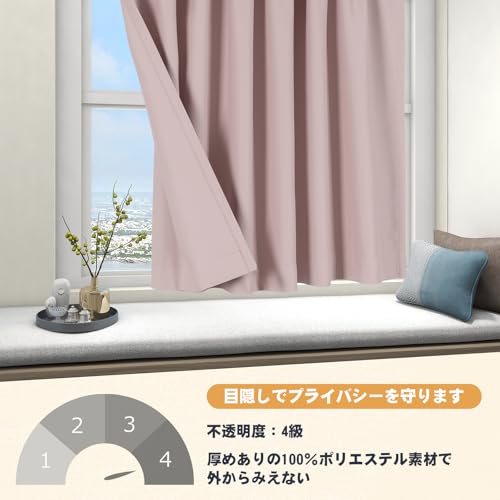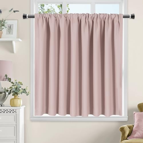 AooHome 遮光 カフェカーテン 小窓用 ピンク 70cm丈 遮熱 断熱 1級遮光 高密度布製 目隠し 無地 UVカット 防寒 保温 省エネ 洗える 間仕切り 厚手 キッチン 浴室 トレイ 子供部屋 廊下 1枚入