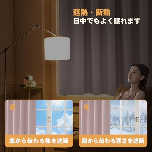 【取付方法】両端の直径2.0cm以下の突っ張り棒が使用可能です。*別途対応可能な突っ張り棒をご用意ください。ご注意:同じ等級であっても、カーテンの明度や色彩によって遮光の度合いが変わります。薄い淡い色は光を通しやすく、濃い暗い色は光を通しにくいです。遮光性を重視される方は濃色をおすすめします。