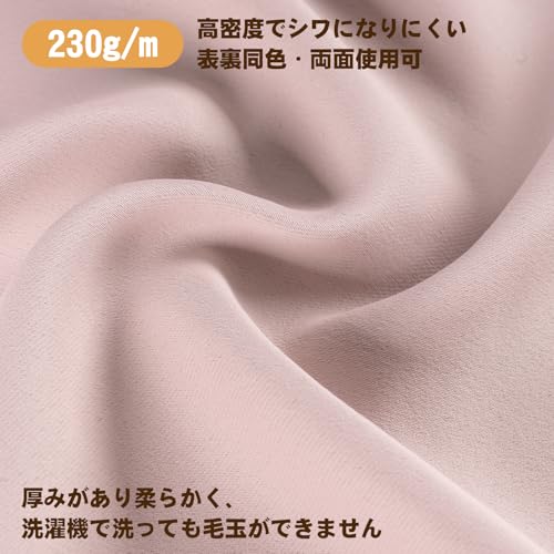 【柔らかい高密度生地・表裏同色】高密度と柔らかい生地で使用、表裏同色両面を使用できます。厚みがあり、柔らかく、洗濯機で洗っても毛玉ができません。お手入れしやすいのでいつも清潔に使用できます。カーテンの重みで洗濯ジワも伸ばすことができので、形態安定としてはとても効果が期待できます。
