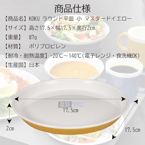 KOKUBO(コクボ) KOKU ラウンド平皿 小 マスタードイエロー 17.5cm 日本製 食洗機対応 キッチン 料理 食器 耐熱 レンジ 対応 軽量 プレート プラスチック 割れない おしゃれ 可愛い シンプル 取り皿 小分け サービング カレー オーブン KC-224