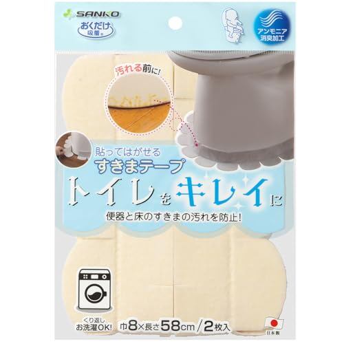 Sanko サンコー トイレ 便器すきまテープ ずれない 貼るだけ 汚れ防止 【日本製 消臭 洗える】 おくだけ吸着 アイボリー 2枚 8×長さ58cm KX-68