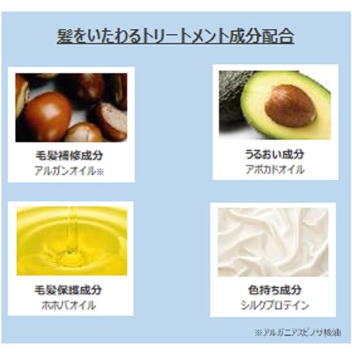 原材料: [成分]:水、ラウラミドプロピルベタイン、BG、アボカド油、アルガニアスピノサ核油、加水分解シルク、クエン酸、コカミドDEA、ホホバ種子油、ポリクオタニウム-10、ポリクオタニウム-22、メチルパラベン、ラウロイルメチルアラニンNa、EDTA-2Na、PEG-40水添ヒマシ油、香料、塩基性青124、塩基性紫2、HC青16