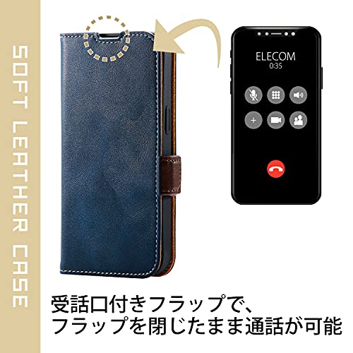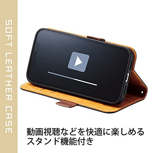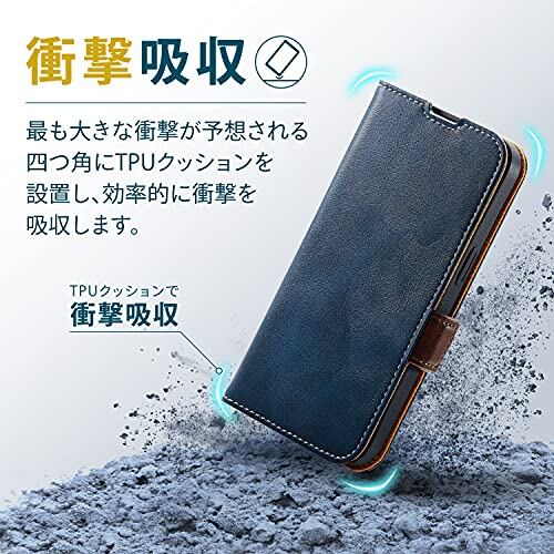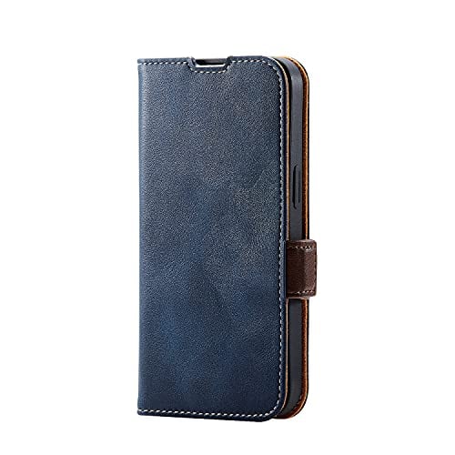 エレコム iPhone 13 Pro/レザーケース/手帳型/耐衝撃/磁石付き/ネイビー