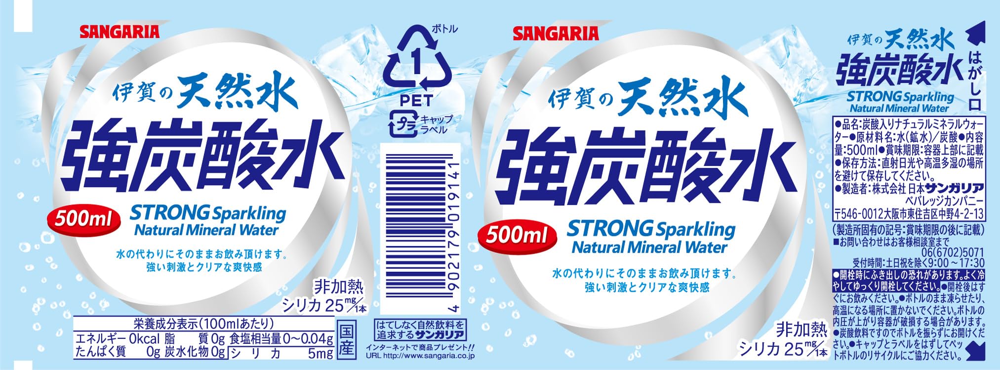 サンガリア 伊賀ノ天然水 強炭酸水 500ml 24入リ