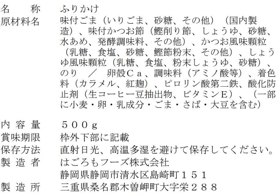 はごろも 業務用パパッとふりかけ かつお 500g(7375)