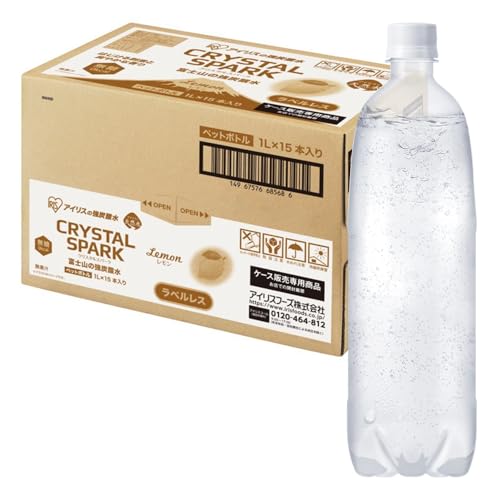 アイリスオーヤマ 炭酸水 レモン ラベルレス 1000ml ×15本 富士山の強炭酸水 バナジウム含有 強炭酸水 ペットボトル 静岡県産 ケース 1リットル ボトル 割り材