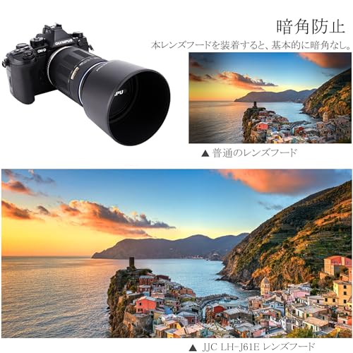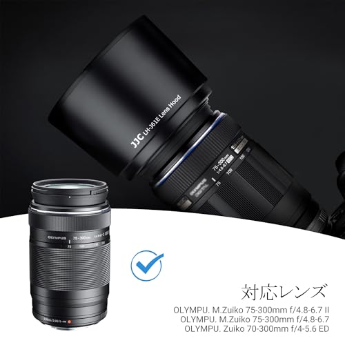 JJC オリンパス LH-61E 互換できる 可逆式 レンズフード OLYMPUS M.ZUIKO DIGITAL ED 75-300mm f/4.8-6.7 と OLYMPUS ZUKIO DIGITAL ED 70-300mm f/4-5.6 対応 オリンパス OM-D E-M1 Mark III II E-M1X E-M5 Mark III II E-M10 Mark IV IIIs III II E-PL10 E-PL9 E-PL8 E-PL7 E-PL6 E-PL5 など適用