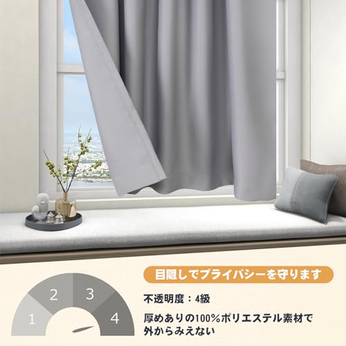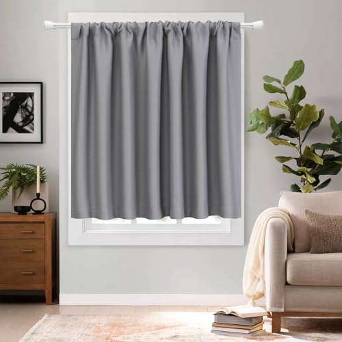 AooHome 遮光カフェカーテン 小窓用 遮熱 断熱 丈80cm 1級遮光 目隠し 無地 UVカット 防寒 保温 省エネ 洗える 間仕切り 高級布製 厚手 キッチン トレイ 子供部屋 廊下 1枚入 グレー