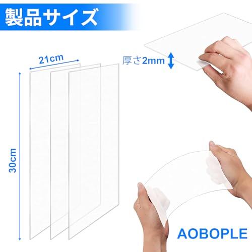 AOBOPLE 4枚厚さ2mm A4 透明アクリル板 明るいプレキシガラス板 塗装 DIY制作 耐久性 保護フィルム付き アクリルケース 棚板 コレクションケース製作 (297*210mm, 透明クリア)