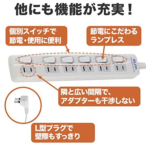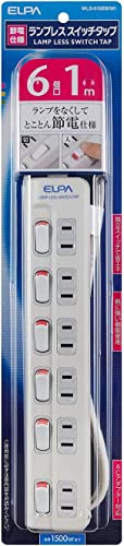 エルパ(ELPA) ランプレスタップ スイッチ コンセント エコ 6個口 1m 125V 15A 屋内専用 WLS-610EB(W)