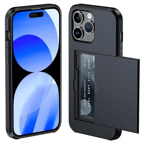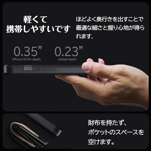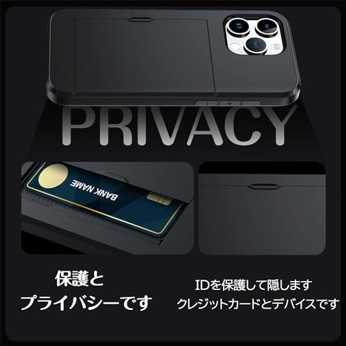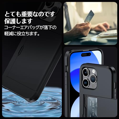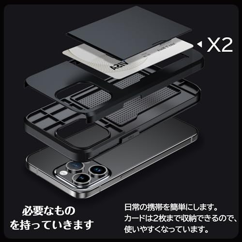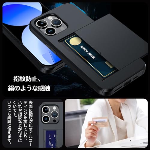 iPhone 15 Pro 用 ケース カード収納 背面 米軍MIL規格 耐衝撃最強 アイフォン15 Pro ケース ICカード収納 落下防止 全面保護 指紋防止 滑り止め 擦り傷防止 ブラック