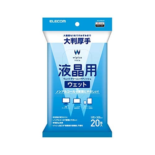 エレコム ウェットティッシュ 液晶用 クリーナー 20枚入り 液晶画面にやさしいノンアルコールタイプ 大判 厚手 日本製 WC-DP20LP4
