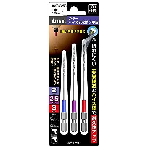 アネックス(ANEX) 下穴錐 ハイス鋼 カラー仕様 3本組(2/2.5/3mm) ACK3-2253【釘やビスの下穴あけなどの作業に】