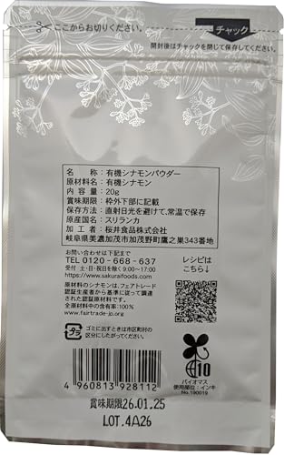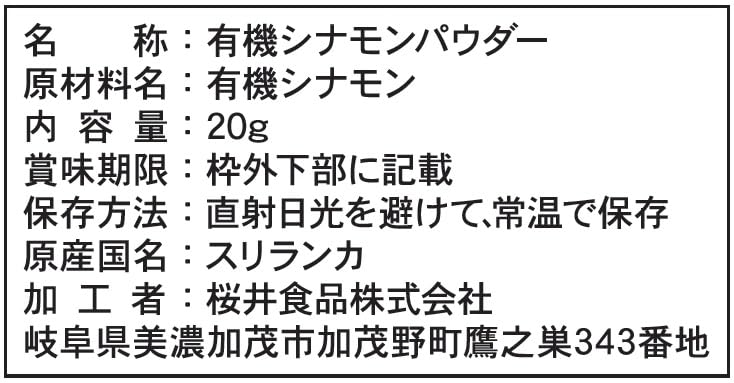 桜井食品 オーガニックセイロン シナモンパウダー 20g×3個