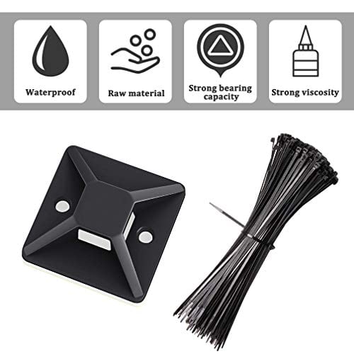 ケーブルタイ マウントベース ナイロン結束バンド セット ナイロンケーブルストラップ 強力粘着テープ付き 配線 固定具 ケーブル コード 収納 整理 耐熱 耐候性 120個セット ブラック By Viaky