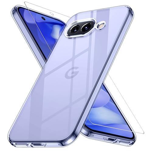 Google Pixel 9a ケース クリア 黄変防止 グーグルピクセル9a 専用 耐衝撃 ガラスフイルム保護付き 指紋防止 落下防止 耐久性 ストラップホール付 薄型 軽量 ソフトカバー ワイヤレス充電対応 googleピクセル9a用 XIWXI