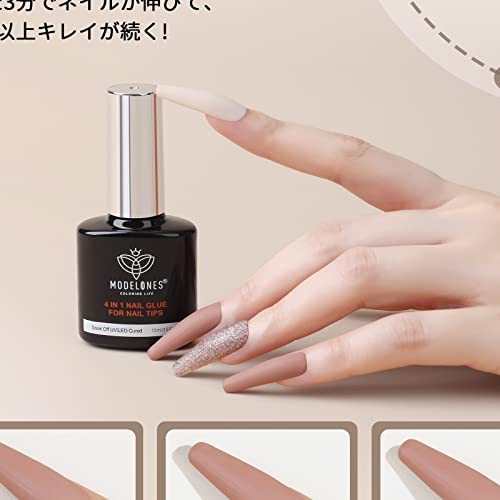 Modelones ジェルネイル ネイルグルー ネイルチップ接着剤 15ml 2本セット 4in1 ネイルチップ用グルー&ベースコート&ラインストーンジェル&ブルーミングジェル