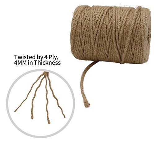 Tenn Well 4mm 太い 麻ロープ, 50M 麻縄キャットタワーの補修 ジュート 麻紐 園芸 梱包 手作り 猫爪とぎ修理などに (茶色)