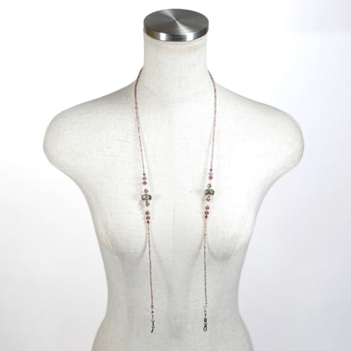 商品説明:彩り豊かなビーズを繋げた眼鏡チェーンです。 着けるとネックレスのような華やかさがあるので、 他にアクセサリーを着けなくても充分お洒落になります。 メガネの置き忘れ防止に、眼鏡のスピーディーな掛け外しに。 機能的に、ファッショナブルにメガネライフを演出します。 メガネの着け外しはゴムのループ式になっており、 ループを繋ぐカニカンを外せばネックレスとしても使える逸品です。トンボ玉のデザインが写真と少々異なる場合もございますのでご了承ください。