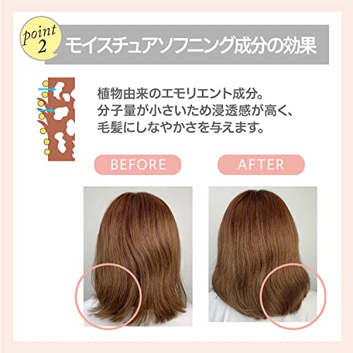 植物由来のエモリエント成分「モイスチュアソフニング成分」配合。傷んだ髪の内部に水分、油分を補給し、毛先までしっとりしなやかな髪に導きます。